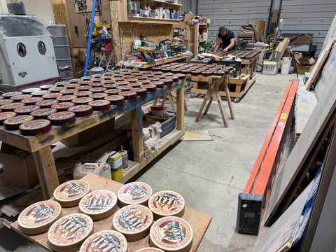 Decked out in its sideshow-poster best, each box has custom painted images by resident artisan Ryer Appeldoorn, and each tier has its own color scheme and coordinated contents.