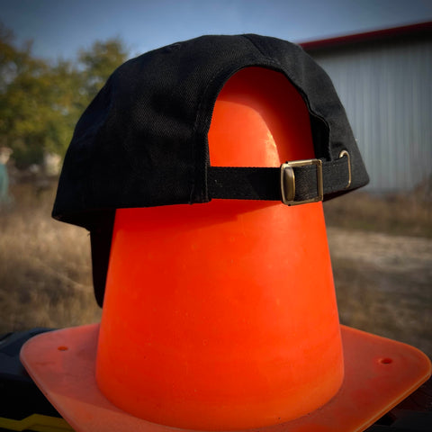 Blue <> logo embroidered on an adjustable black cap.